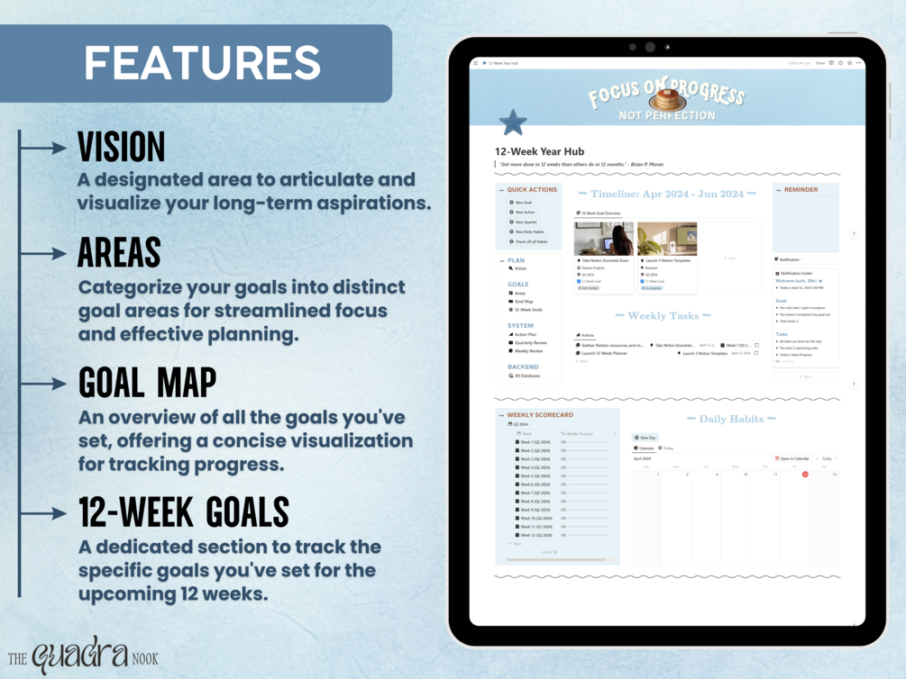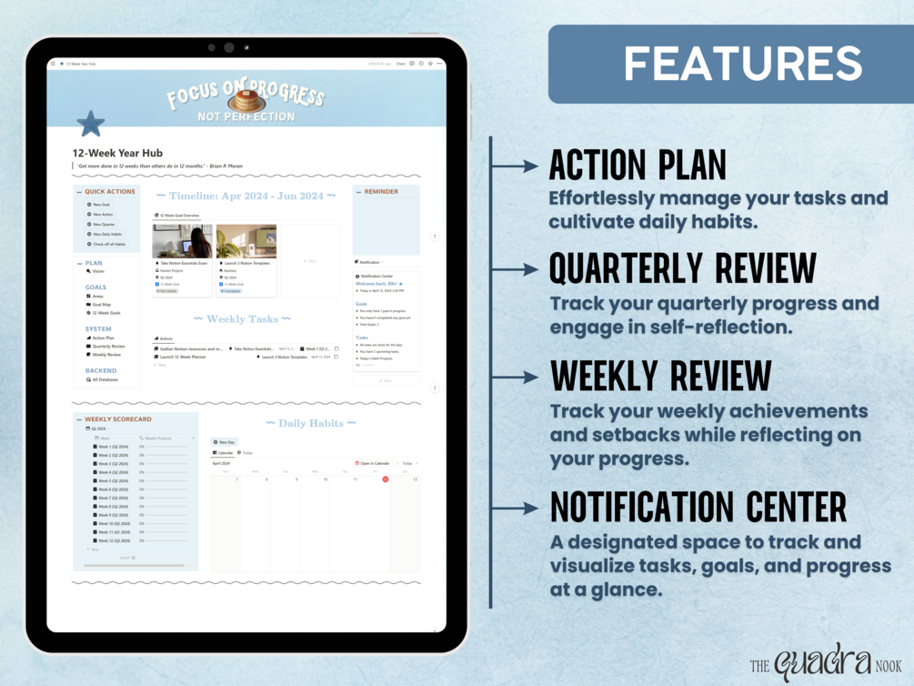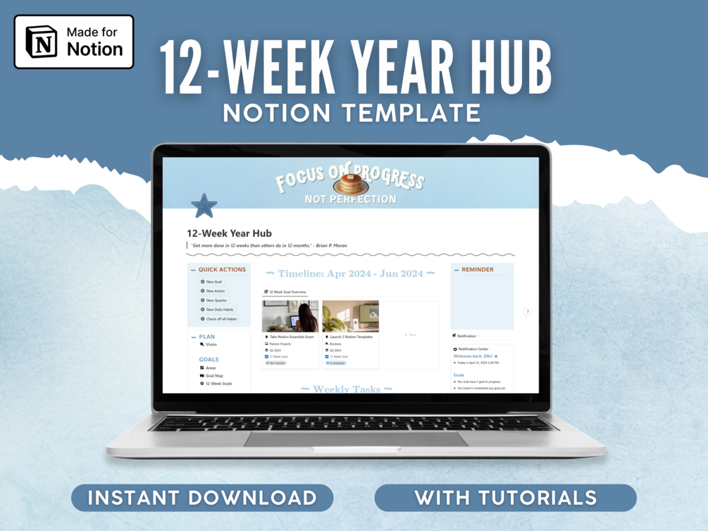 The 12-Week Year Hub isn't just any planner. It's a catalyst for transformation. By harnessing the power of focused action, you'll turn aspirations into realities, one week at a time.