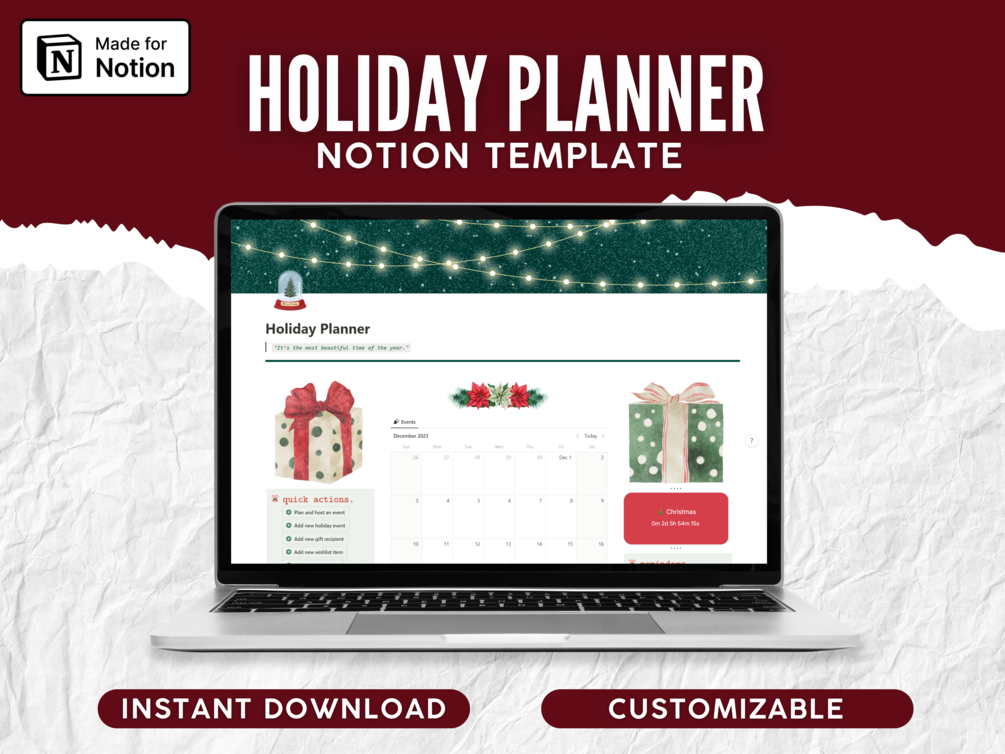 Say goodbye to the chaos and hello to festive zen with our intuitive, easy-to-use Notion Holiday Planner designed for all ages. Seamlessly organize your holiday festivities, from gift lists to party plans, while effortlessly checking off tasks like ornaments on a twinkling tree.